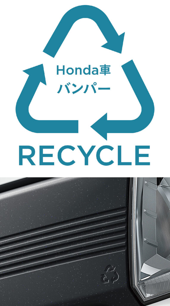 エクステリアは、従来のN-VANのデザインを踏襲しつつ、Hondaが掲げる環境負荷ゼロ社会実現に向けた取り組みとして、使用済み自動車のバンパーをリサイクルした「バンパーリサイクル材」をフロントグリルなどに使用し 、Hondaの循環型社会への姿勢を示しています。