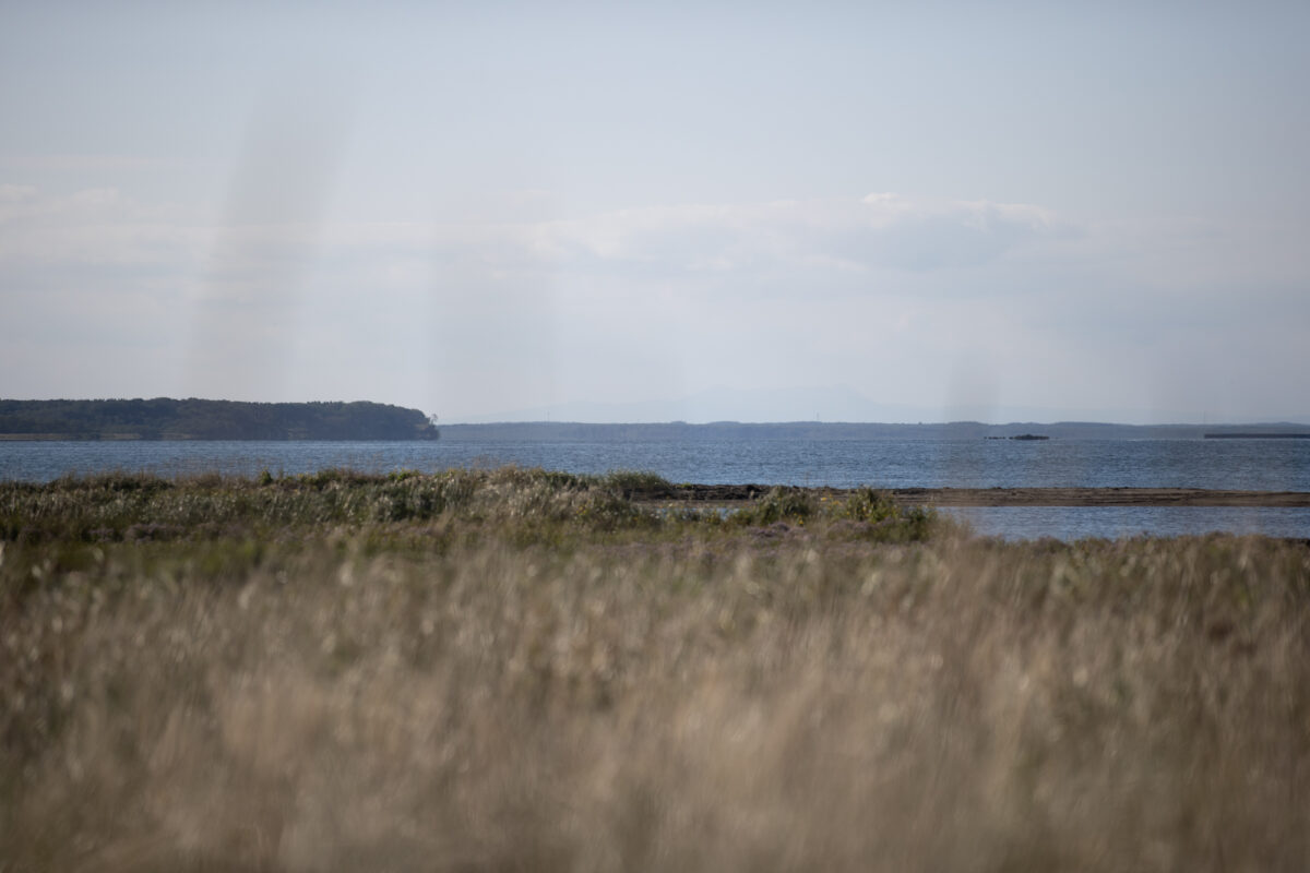 次に向かったのは、地図で見ると不思議な地形の砂州になっている走古丹(はしりこたん)。野付半島やサロマ湖も興味深いところですが、さらにマニアックな砂州を目指しました。何かがあるわけではないのがとてもいい。右手には汽水湖の風蓮湖(ふうれんこ)、左手にはオホーツク海、と水面にはさまれながら細い砂州をひたすら走ります。
