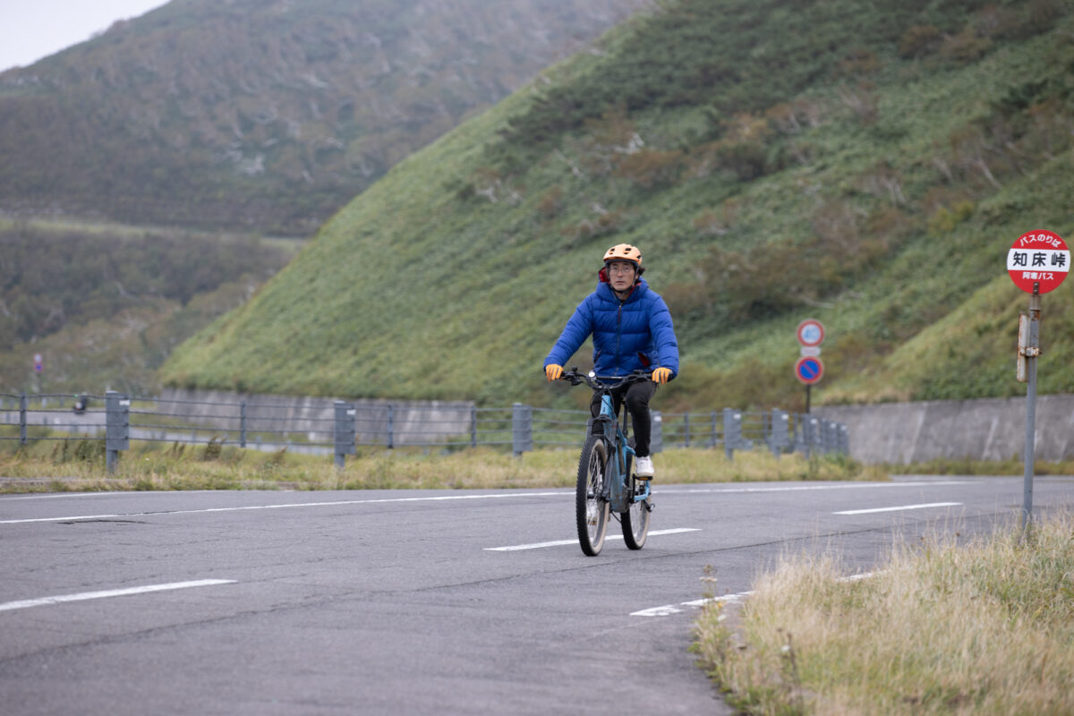 霧多布を車で出発して北へ向かう途中に立ち寄ったのは、北太平洋シーサイドライン。浜中町から根室までを結ぶ知る人ぞ知る海沿いの道なのですが、ここも上り下りの多い気持ちのいいルート。思わずe-EDIT275を車からおろして、ポタリングしてみることにしました。