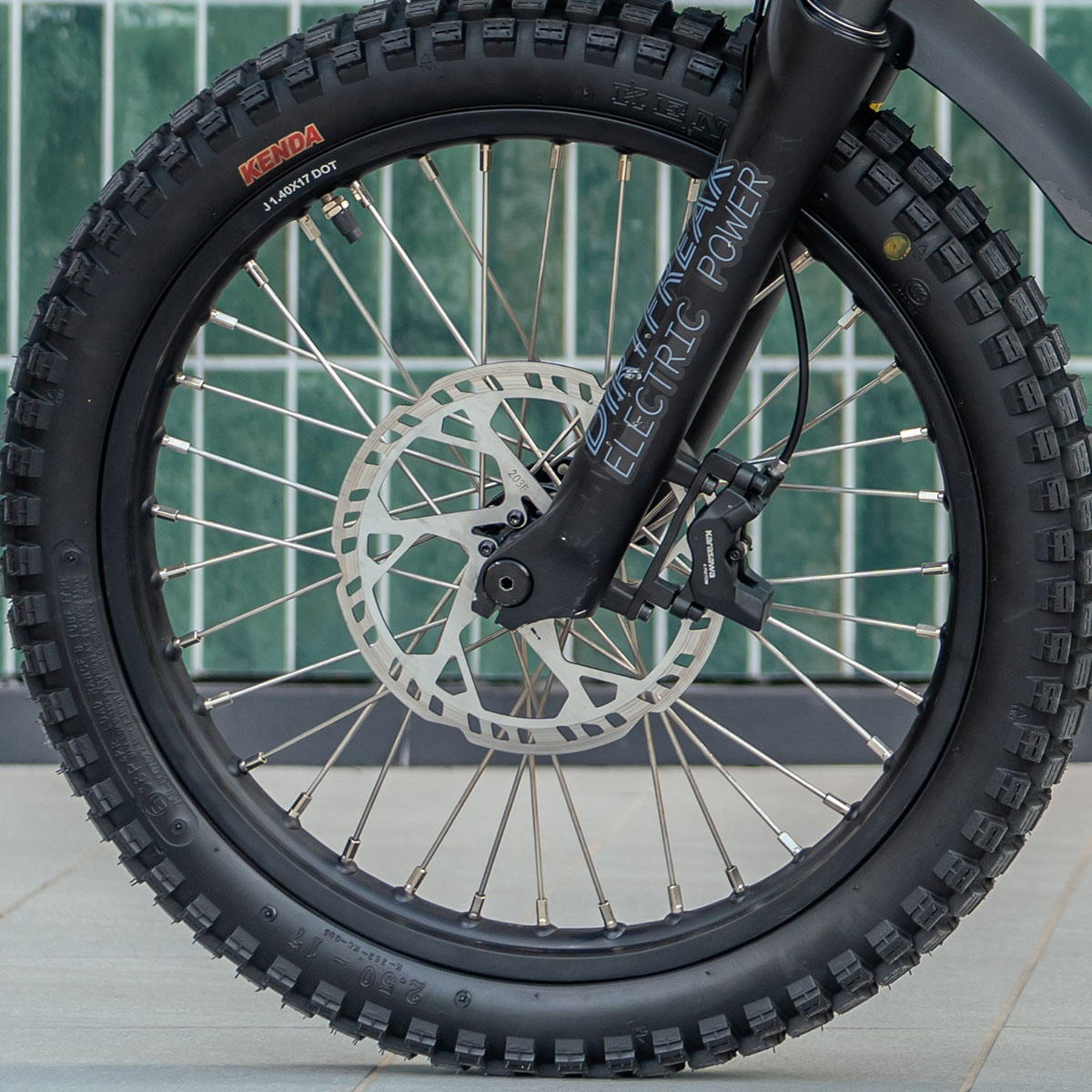 KENDA製のブロックタイヤを装備。舗装路はもちろん、土や砂利、石や木の根などさまざまな路面においてもすぐれたグリップを発揮します。