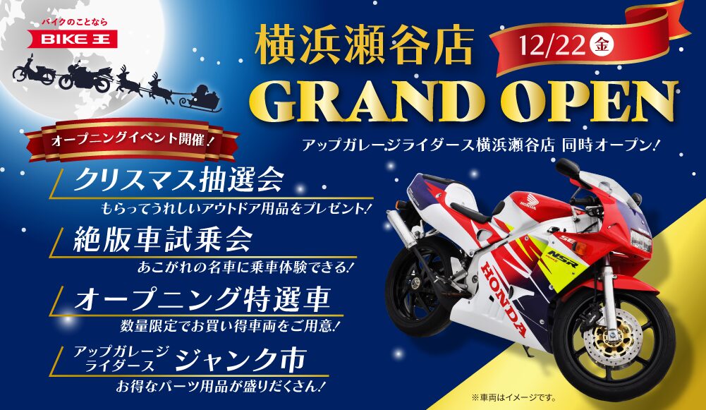 クリスマス抽選会や試乗会も開催! 「バイク王 横浜瀬谷店」が新オープン