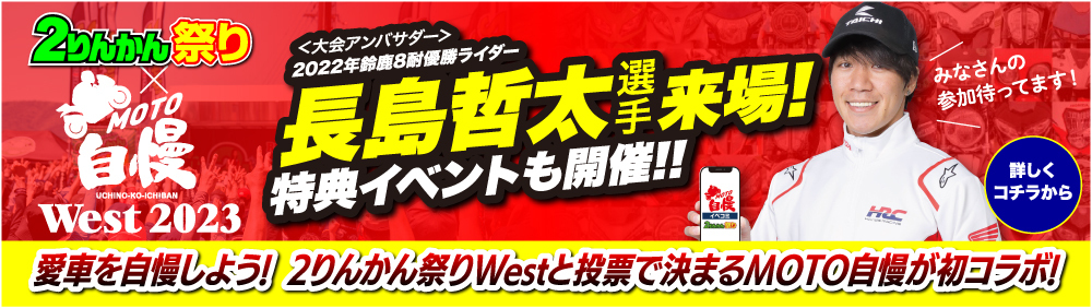 例年多くのバイク好きが集まる2りんかん祭りは、スクーターからビックバイク、ビギナーからベテランまで全国各地から来場者が参加する。家族連れや車での来場も可能なため、入場者数は8000人を超えるほど!鈴鹿8耐優勝ライダーの「長島哲太選手」をはじめとする豪華なゲスト出演や、ワンコインで参加できる「ライディングレッスン」や大迫力の「ダートトラックショー」、そして豪華景品がもらえる「じゃんけん大会」なども行われる大規模イベントである。