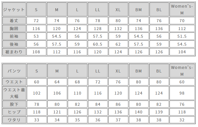 [ジャケット製品サイズ] ※(単位:cm) 製品誤差±約1cm