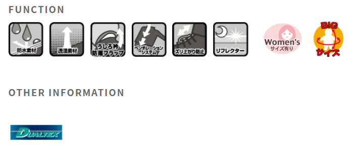 MATERIAL: 表地/ナイロン70Dデュアルテックス加工 襟裏/起毛トリコット