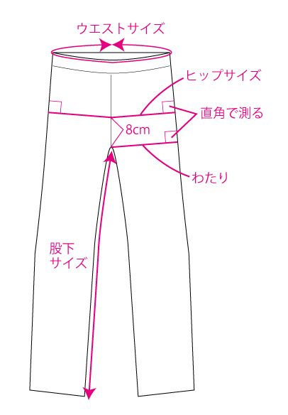 [パンツ製品サイズ] ※(単位:cm) 製品誤差±約1cm