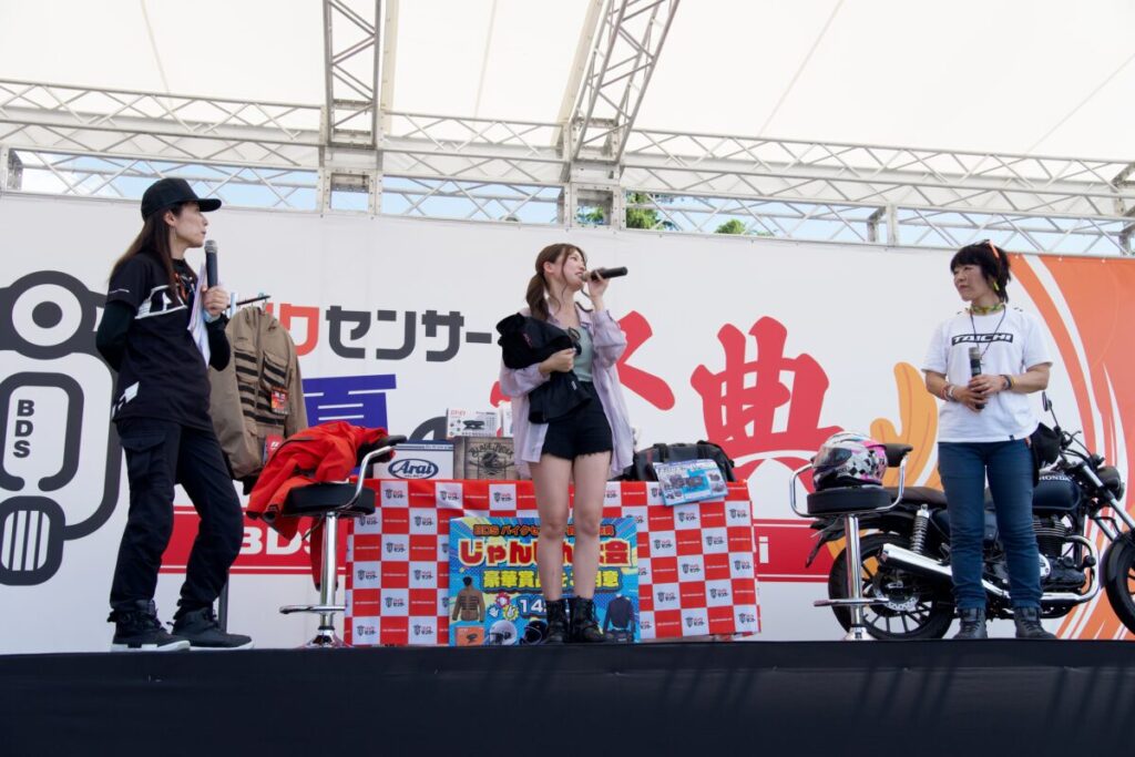 BDSバイクセンサーのCMにも出演している野性爆弾くっきー!のスペシャルトークショーを実施。この日の目玉イベントだけに中央ステージは多くの人で溢れていた。バイクを好きになったキッカケなどを話してくれた。