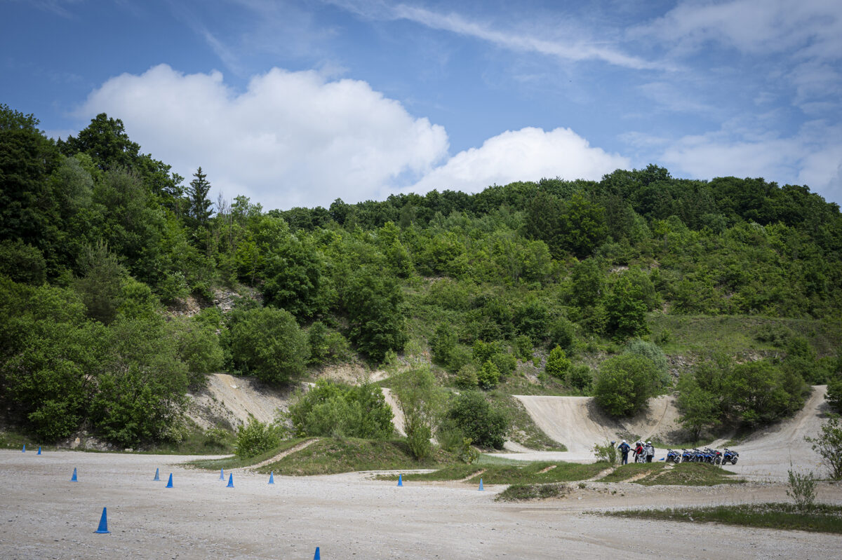 午前中に舗装路での走行を終えて、いよいよ待望のオフロードへ。ヘヒリンゲンという街にあるBMWの施設エンデューロパークは、広大な敷地の中に林道からフラットダート、けもの道、広大な砂利のフィールド、岩を敷き詰めたような人工的なセクションなど様々なコースを持つオフロード施設です。