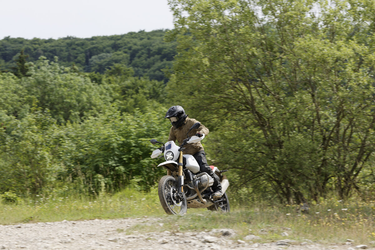 大きな岩がころがるロックセクションやガレ場、ちょっとしたジャンプができるスポットでも前後にサスペンションはつねにしなやかにショックを吸収します。電子制御サスではないものの、その動きにまったくの不満もありません。そしてシート下で程よく絞り込まれたフレームと、シートとタンクがなだらかにつながる外装デザインは、車体が振られるような状況でもつねに下半身で車体をしっかりとホールドができる。いままで自分のアーバンG/Sではなかなか難しかったオフロードでの車体コントロールがいとも簡単にできることを実感しました。もちろん、ハンドルやステップの位置関係もまさにオフロード向け、といった印象です。