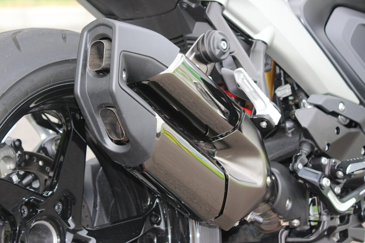 セルを回してエンジンをかけると比較的低く、くぐもった音でエンジンが目覚める。残念ながら始動時のエンジン音は1250RSのほうが、勇ましくパンチの聞いた音だ。しかしそれは排気ガス規制の問題でサイレンサーを小型化して、その分キャタライザーを大型化したためなので、仕方のないこと。