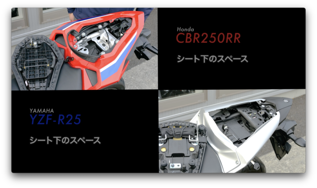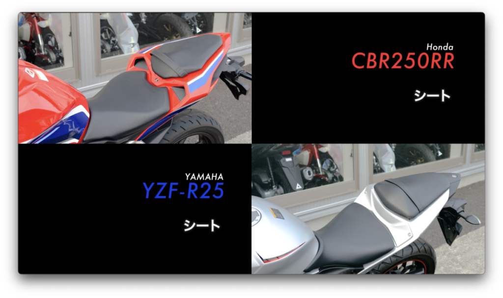 シート高はCBR250RRが790mm、YZF-R25が780mmとほぼ変わらず。