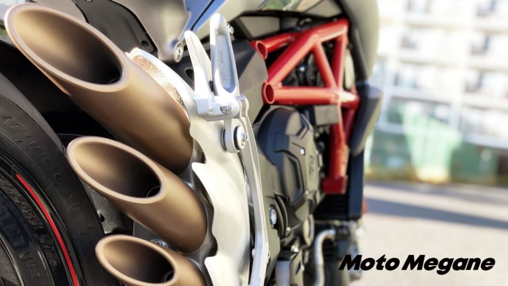 ネガティブな部分はたくさんある。シートが薄すぎて痛くなるし、荷物なんて積めやしない。だいち、荷物なんてせっかくかっこいいデザインを台無しにしてしまうだけだ。トラブルもかなり減ってはいるがイタリアと国産を比べたら閉口してしまうかも。それでも、乗りたくなってしまう、買いたくなってしまう。こんなオンナに手を出してしまったら身の破滅だと知っている。でも、その魅力に勝てない。後悔と快楽。こんな3気筒はMVアグスタにしかない。
