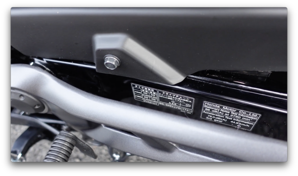 空気圧はどの車両も、スイングアームのチェーン側に数値が表記されたステッカーが貼られていることがほとんど。
