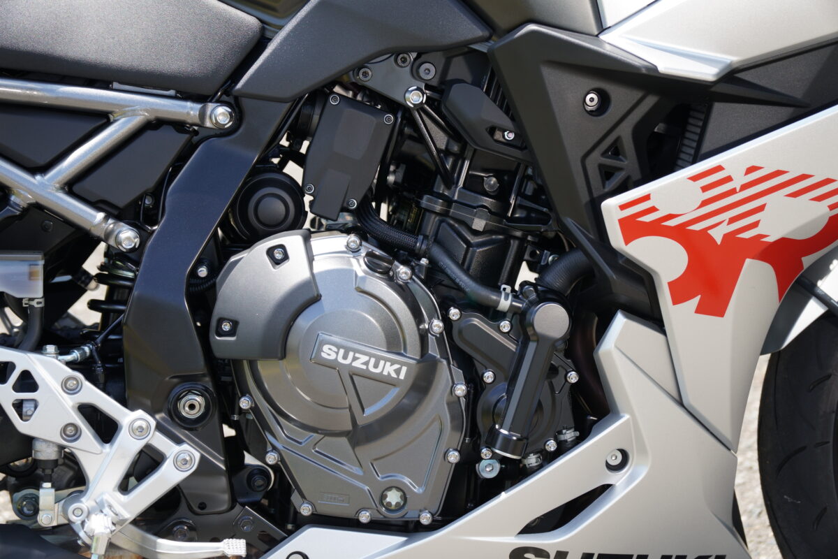 今回試乗したGSX-8Rと同様に並列2気筒エンジンは、燃焼間隔も同じ270度クランク。燃焼間隔のことを細かく説明すると長くなるので、詳細はまた今度説明するとして、270度クランクはトラクション性能とエンジンのパルス感を味わえるのが利点。