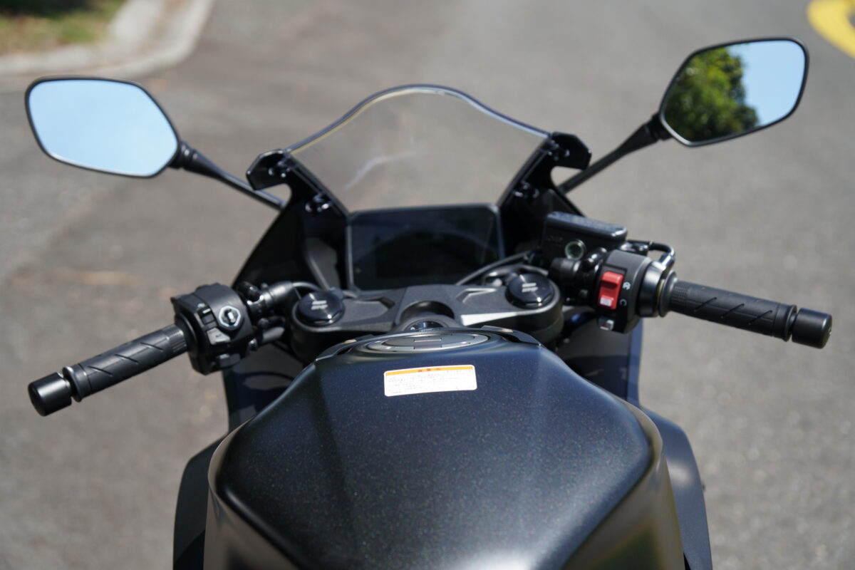 スポーティな外見に反して、思ったよりもリラックスしたポジションだ。上体はほどよく前傾している程度なので、フルカウルのスポーツモデルに乗ったことがないライダーでも不安を感じることはないだろう。