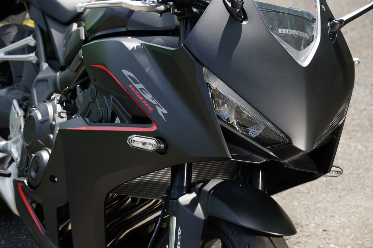 ホンダのCBR650Rのベースとなっている車両は、「CB650F」。CB650Fはネイキッドバイクで、CBR650Rはこのモデルをもとにフルカウルを採用しスポーツ性能を向上させた。エンジンは同じ649ccの並列4気筒エンジンを使用するが、CBR650Rではスポーティな走行性能を強調するため、サスペンションやポジションなどが改良され、外観もスーパースポーツにふさわしいデザインとなっている。