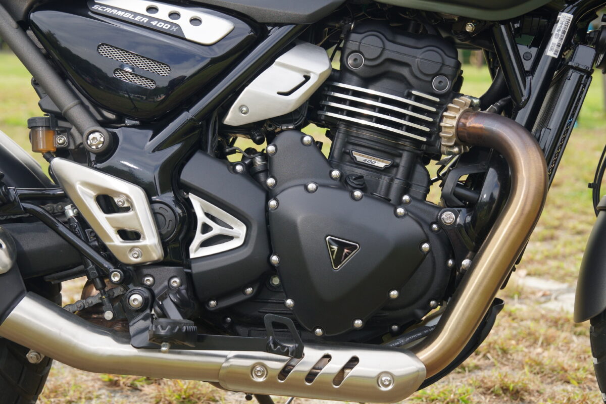 スクランブラー400Xはオンロードとオフロードの両方を視野に入れたスポーティな設計で、ややアップライトなポジションが採用されている。オフロードの荒れた路面でタイヤが取られたとしてもバランスを取りやすいようハンドル幅は広く設定されている。小柄なライダーやオンロードモデルにしか乗ったことがないようなライダーにはネイキッドモデルのようなバーハンドルながら、よりワイドなポジションのため多少の慣れが必要かもしれない。オフロードバイクのシッティングポジションのように、シートの前方に座るよう意識すると腕も伸びきらずライディングしやすい。