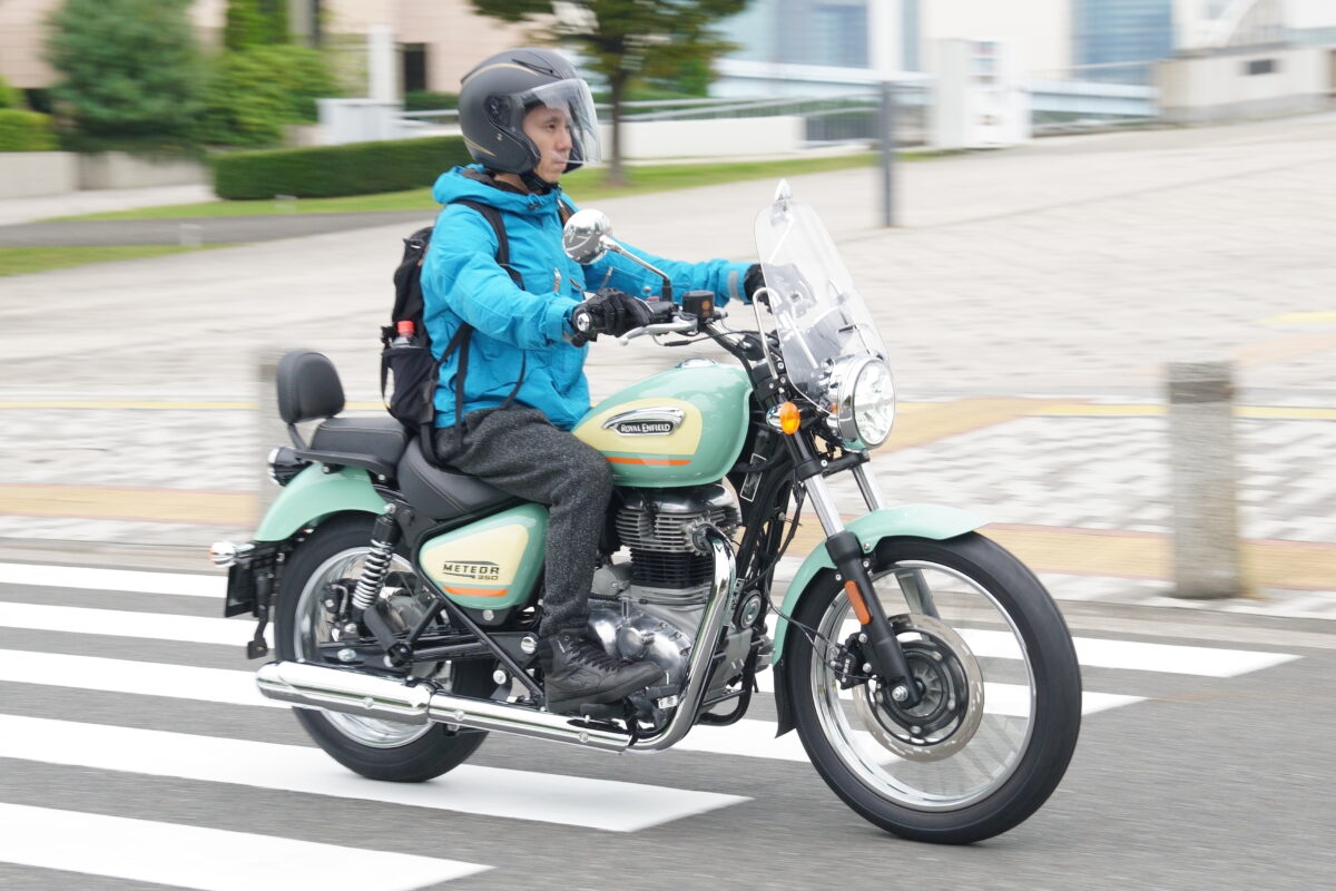 メテオ350のエンジンは低回転域でのエンジンフィーリングが良く、街乗りといった日常での速度域で楽しく走れる。必要にして十分なパワーで穏やかなエンジンフィーリングと、ロングシールド、タンデムシートに設けられたバックレストをスタンダードモデルで装備しているため、長距離ツーリングでも疲れは少ない。日常でも使える旅バイクを探している人には最適な選択だ。