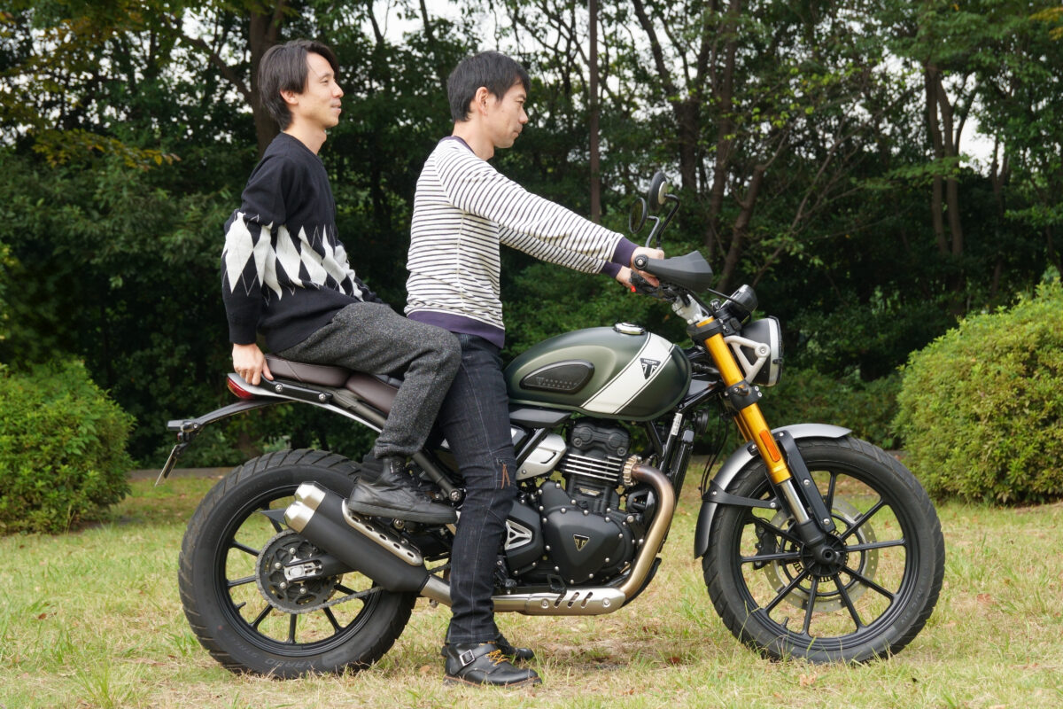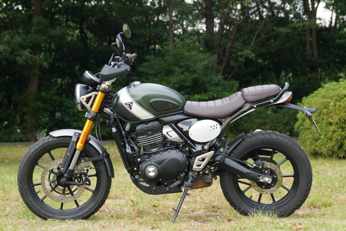もっとも軽く感じたのはSCRAMBLER400X。そもそも車体が軽量であり、スタンドから起こす際も安定感がある。スタンドの払いも簡単で、軽量さが扱いやすさを際立たせていた。