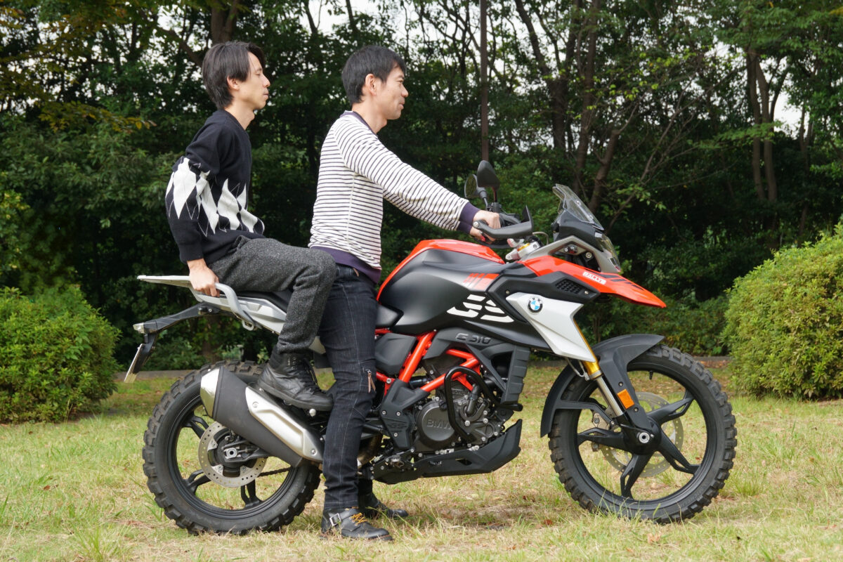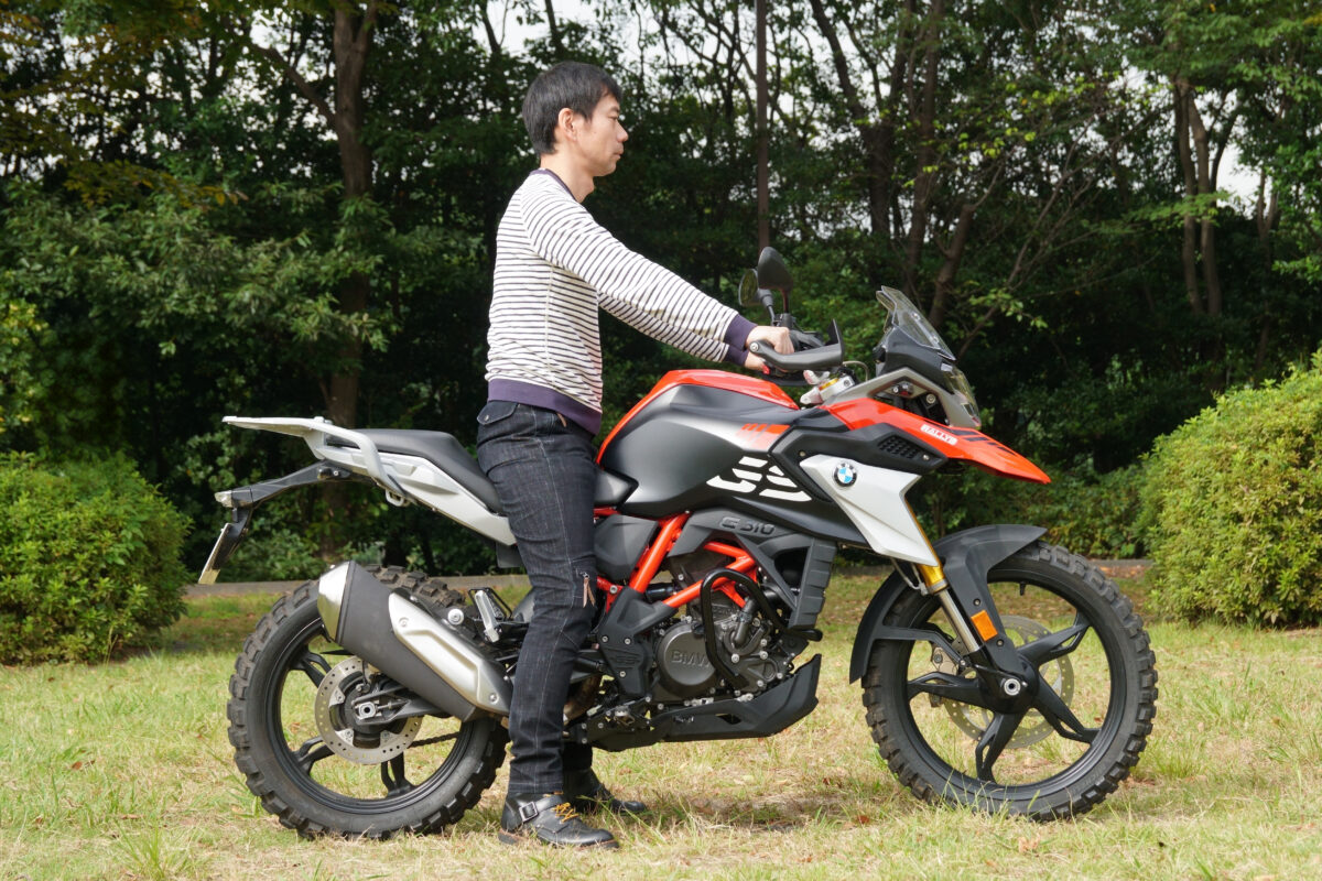 次に足着きが良かったのはG310GS。サスペンションが沈み込みやすいため、両足をしっかりと接地させることができた。車高が高めであるものの、この沈み込みが足つきの補助になっており、取り回しにも安心感を与えてくれる。