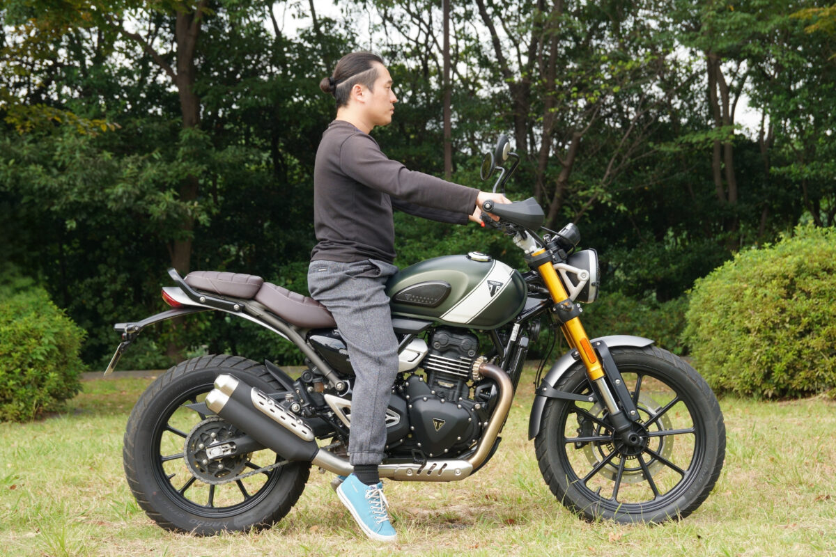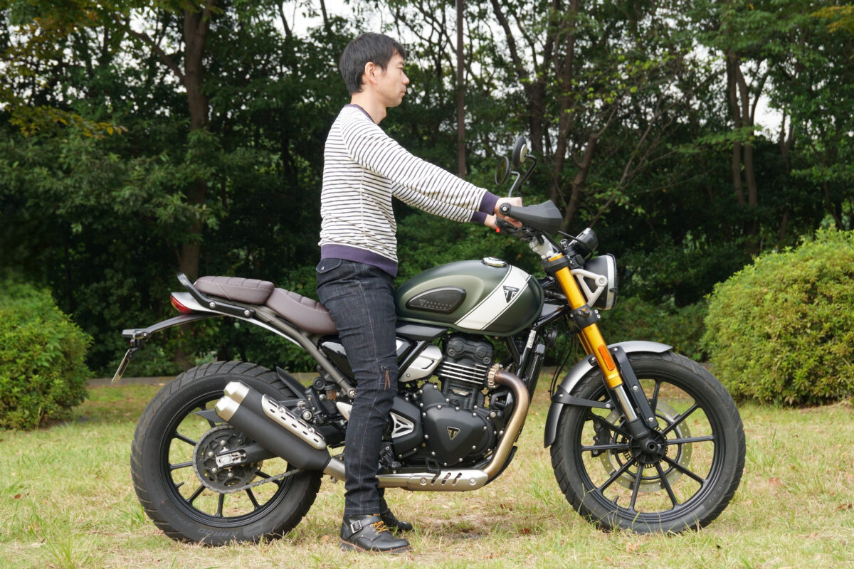 最後にスペック上はG310GSと同じ数値だったSCRAMBLER400X。シート高は835mmあり、そもそものシート高がやや高め。シート幅もあるためバイクに跨がると足が左右に開き、真下に足を出すのが難しいのだ。街乗りや信号待ちなどでのストップ&ゴーが多い場面ではその足着きの悪さが少々気になった。ただし、軽量でバランスも良いため、慣れてしまえば足着きは特段問題ない範疇だ。