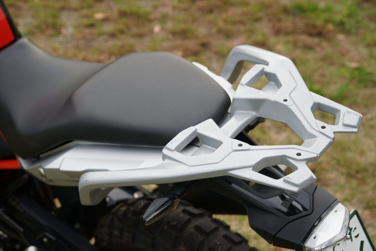 G310GSはリヤキャリアがグラブバーの役目も果たしている。グラブバーは太く非常につかみやすい。