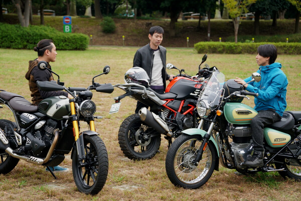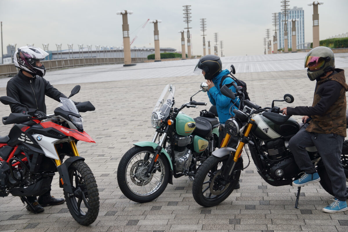 今回モトメガネ編集部がチョイスしたモデルは、BMW G310GS、トライアンフ SCRAMBLER400X、ロイヤルエンフィールド METEOR350の3台。各モデルのカテゴリーが全く異なるため、それぞれの特徴と違いに着目していきたいと思う。