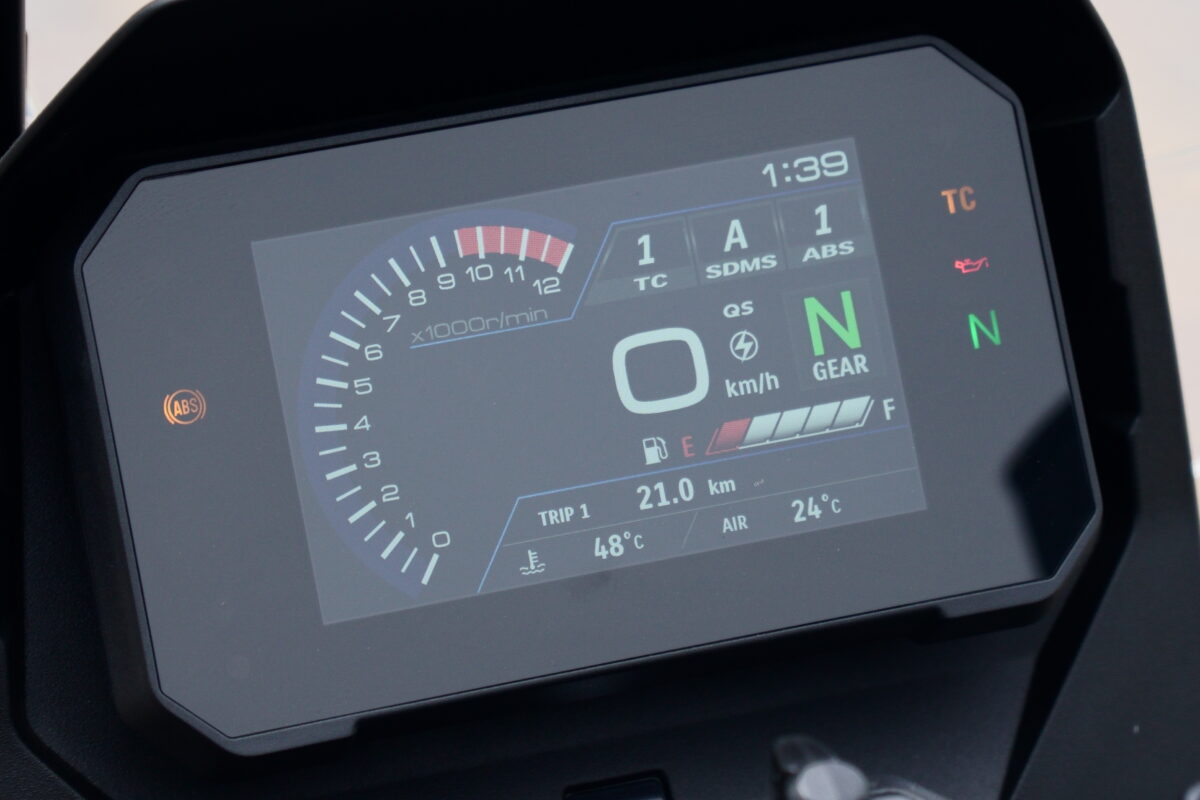 トルクフルな特性で、超低速域をクラッチ操作だけで走行可能。アクセルレスポンスが鋭く、適切なモード選択するなどの制御が必要だが、慣れれば安定した走行が楽しめる。サスペンションは快適で、視界の高さとラクなポジションが渋滞時のストレスを軽減。ハンドル幅が広いため、狭い道ではやや気を使う一面も。