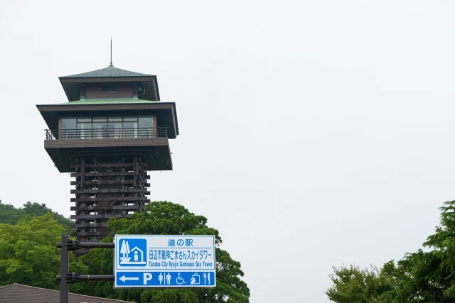 関西圏屈指の極上のワインディングを楽しんでいると、全体のちょうど半分くらいの場所に位置する道の駅「田辺市龍神ごまさんスカイタワー」が見えてきます。