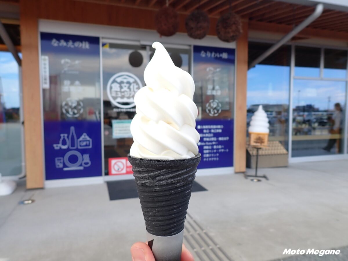福島県浪江町にある「道の駅なみえ」は、そんなライダーにとって外せないスポットだ。注目は、酒造好適米「夢の香」を使った吟麹甘酒ソフトクリーム。濃厚な甘みと発酵の風味が口いっぱいに広がり、走り疲れた体に心地よいエネルギーを与えてくれる。また、ご当地名物の「なみえ焼そば」や酒蔵で造られる日本酒など、ここでしか味わえない魅力も豊富に揃っている。