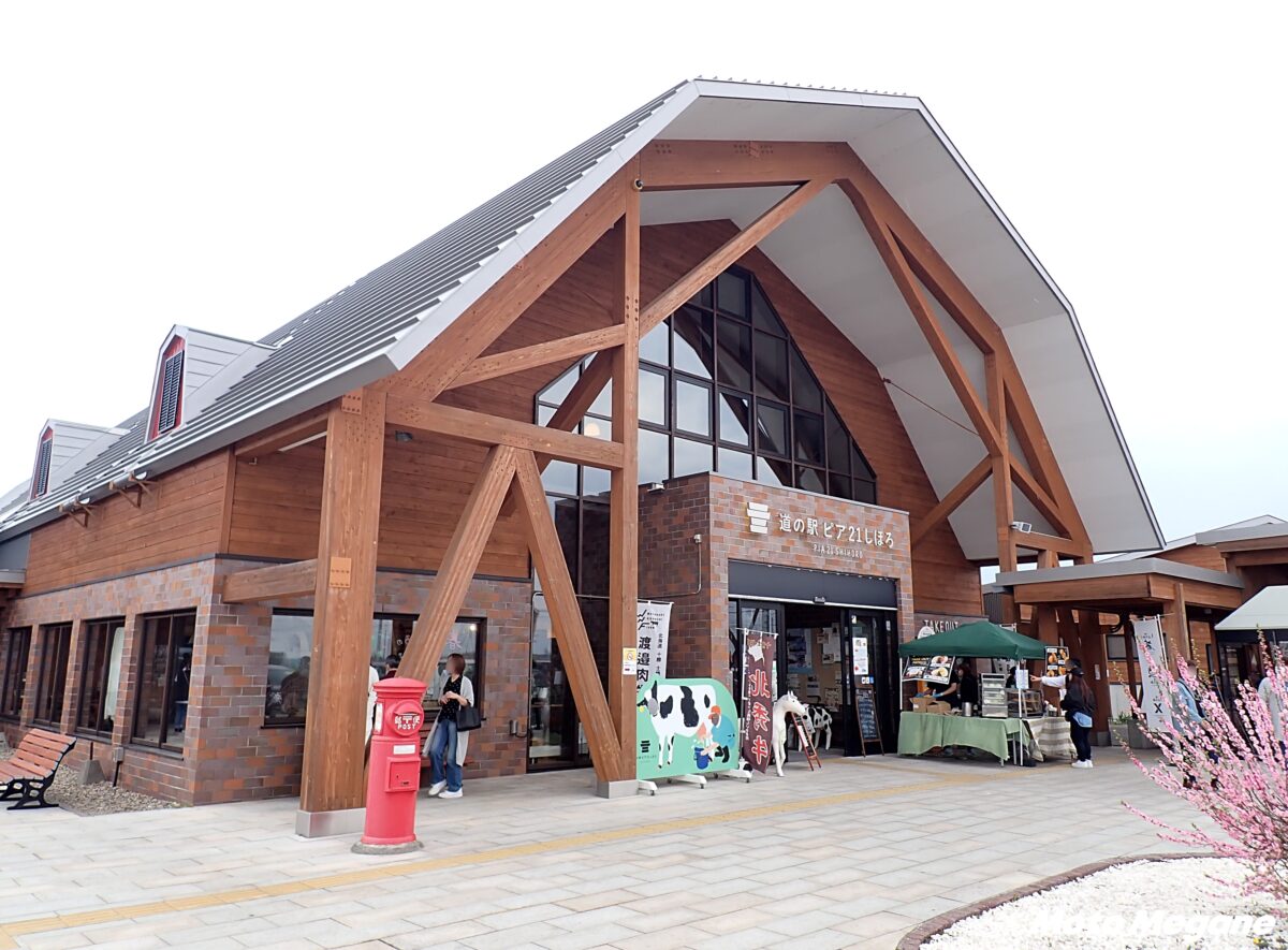 『道の駅 ピア21しほろ』はR241とR274の交差点に位置。牛舎風のマンサード型屋根が特徴的な建物で、天井が高く、木のぬくもりのある店内には、士幌町の「食」があふれている。