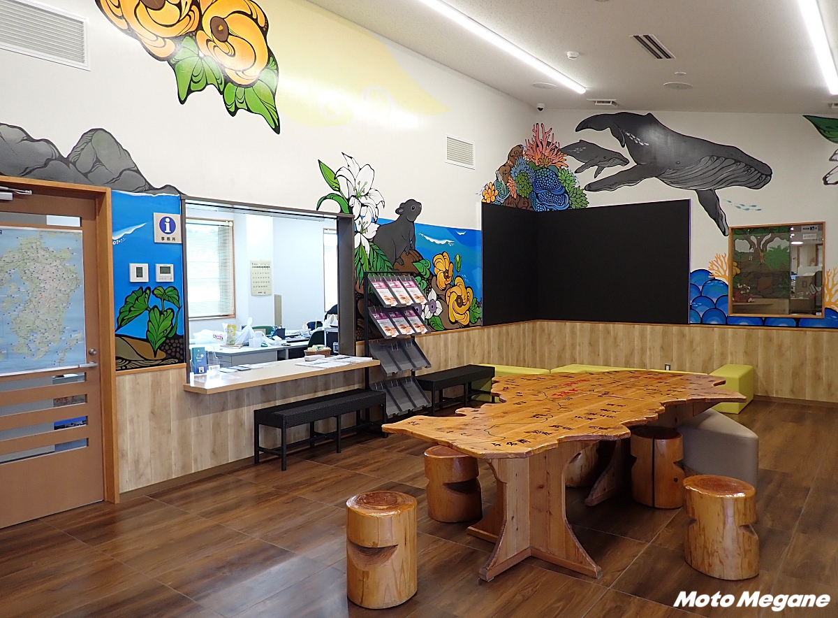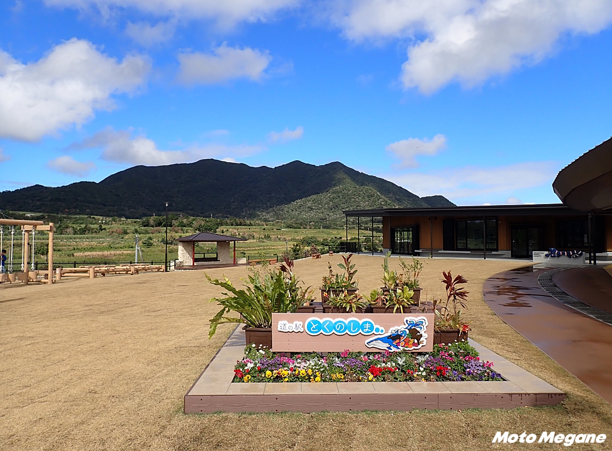 『道の駅 とくのしま』は徳之島の北東部、県道80号沿いに位置。周辺にはサトウキビ畑が広がり、徳之島の大自然を眺めることができる。売店では島の特産品や土産品、農水産物などを販売。黒糖や豆菓子、パパイアの漬物など、徳之島ならではの商品が取り揃えられている。レストランではハンバーグやチキン南蛮などの定食やカレー、鶏飯オムライスなどの料理などを味わえる。店内はテーブル席の他カウンター席も用意されている。徳之島へのアクセスは鹿児島からフェリーで14時間半。空港やフェリーターミナル近くでレンタルバイクも借りることができる。二輪駐車場も完備。