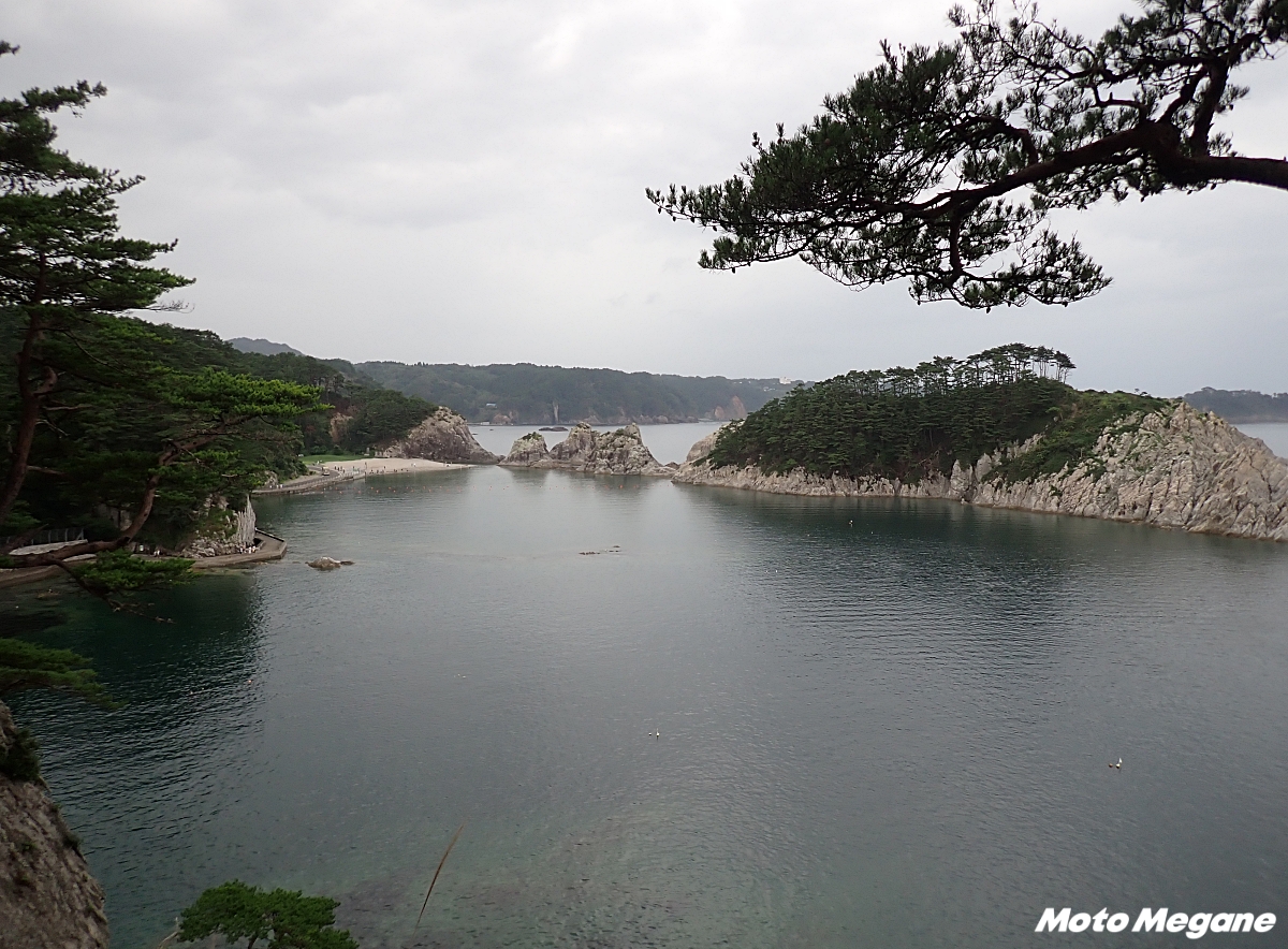 宮古市にある国指定名勝の景勝地。白い流紋岩と松の緑、青い海が織りなす美しい景観が広がる。波穏やかな入り江は「さながら極楽浄土のごとし」と称され、遊覧船や散策で四季折々の自然美を堪能できる。海水の透明度が高く、「日本の快水浴場百選」にも選ばれている。