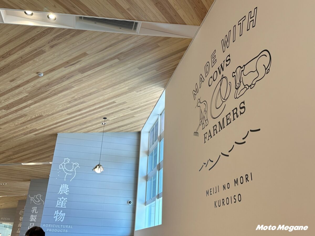 買い物は農産物や特産品が並ぶマーケットで、地場食材を使ったメニューを楽しめるダイニングやソフトクリームなどを販売するミルクスタンドで食事を楽しめる。施設には、牛乳、飲むヨーグルトやソフトクリーム、発酵バターを製造するミルク工房(乳製品加工所)、発酵バターを使った焼き菓子などを製造する菓子工房、休憩所を兼ねたコミュニティースペースの「明治の森コミュニティ」もある。旧青木家那須別邸とハンナガーデンが併設する。
