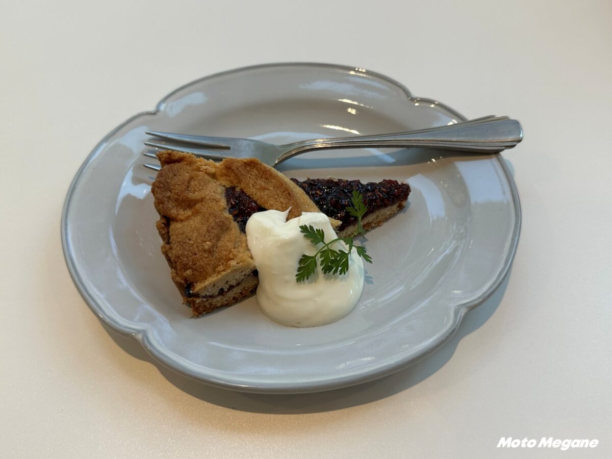 那須塩原市の姉妹都市のオーストリア・リンツ市の伝統的なお菓子。自家製のラズベリージャムをレモンクッキー生地でサンドしたタルト。甘酸っぱいラズベリージャムと、スパイスが香るタルトが抜群。ヨーグルト風味のクリームをつけて食べる爽やかなテイストに。