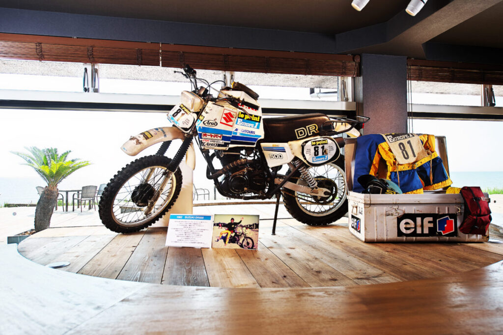 カフェがある能登千里浜レストハウスは、SSTRの最終ゴール地点に位置していることから、フィニッシャーがゴール後に休憩しながら交流できる場所が欲しいと、SSTR代表の風間深志氏より相談を受けたことがきっかけです。2021年6月にグランドオープンし、今では全国各地から”ライダーの聖地”として来場者が急増中!