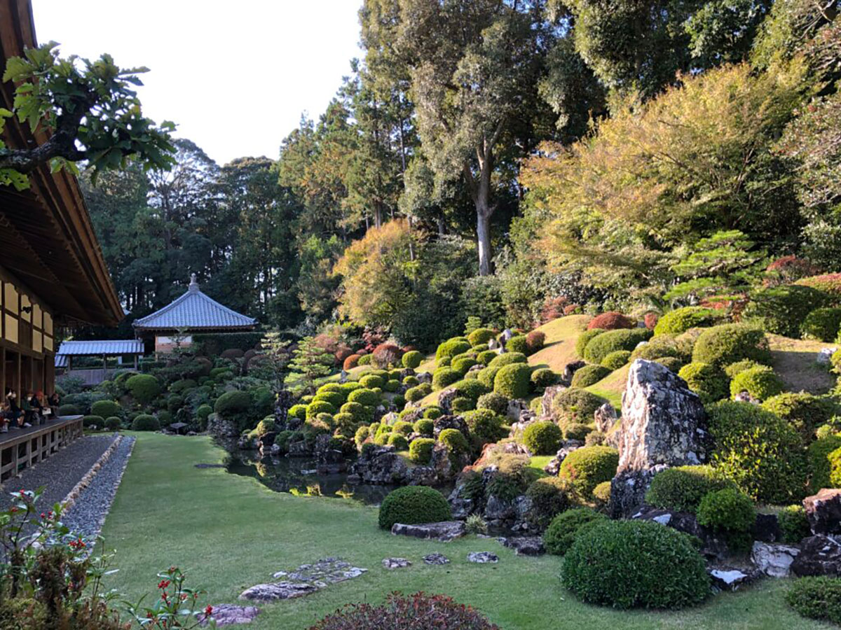 昔、祖母が存命中によく旅行先で大河ドラマゆかりの地を訪ねていたことを思い出し、今また自分が同じようなことを無意識にバイク旅でしているという不思議な因縁も感じつつ、この寺の最高の見せ場でもある庭園を拝見……。最奥に見えるのが井伊家の御霊屋。