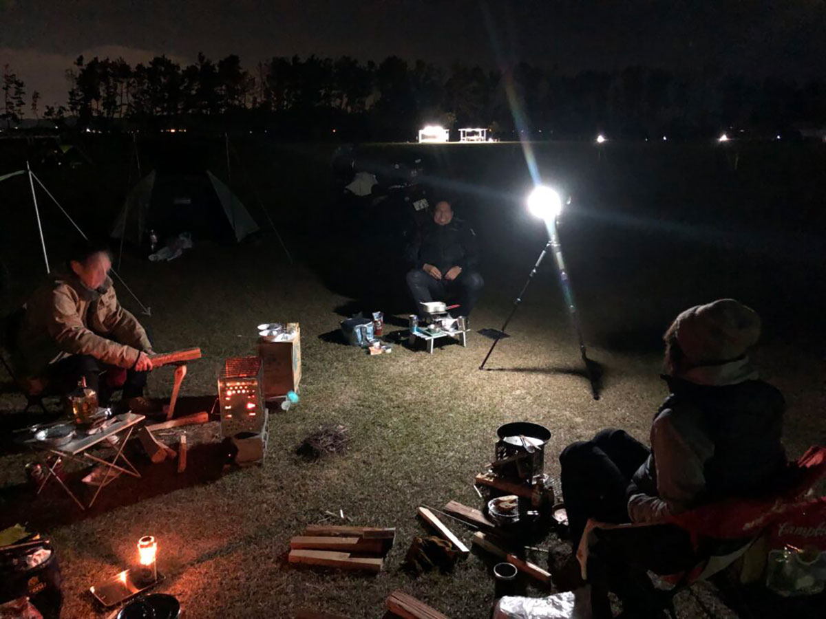 ソーシャルディスタンスに気を付けつつ持ち寄ったツマミをシェアし、初めて集まってキャンプしたとは思えないほど話が弾み、皆さん動画や撮影を忘れるほど盛り上がった宴♪