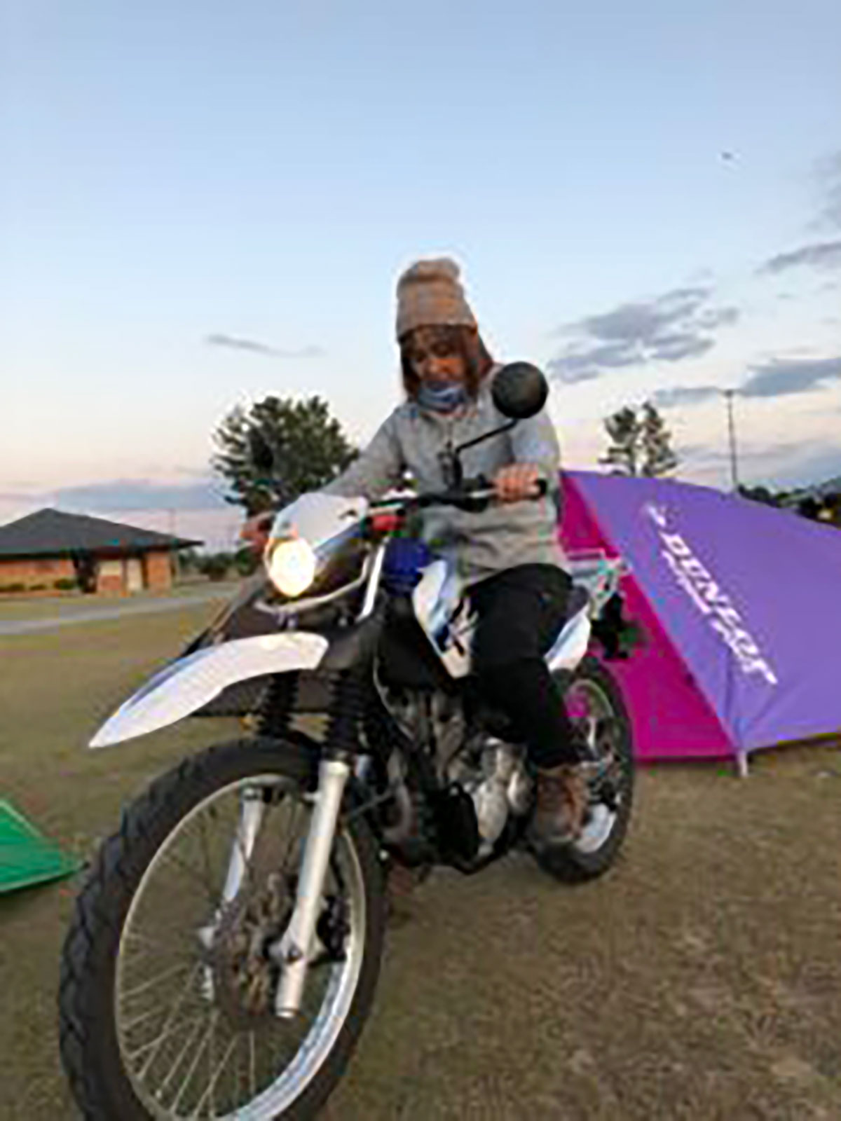 乾杯が終わるとお酒を飲めないGATAGOTOさんが、セロー欲しい病全開で僕のセローに跨りニコニコしながら「いいなぁ、セロー!セキネさんコレちょうだい!」って。
