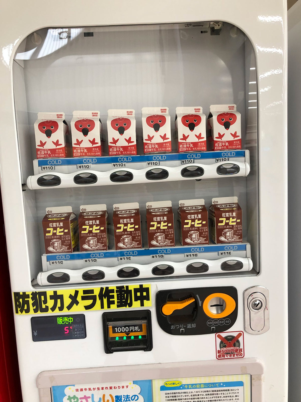 また、ご当地キャラクターの特大サドッキーがいたり、ご当地グルメの「ながもそば」が食べられたり、トキのパッケージが有名な「佐渡牛乳」の自販機もありましたよ♪