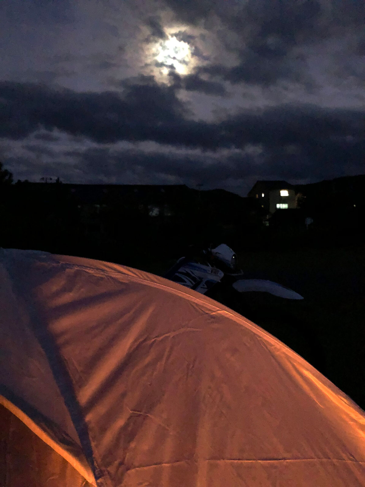 焚火に照らされてオレンジに染まるテントがイイですねぇ。やっぱり佐渡&キャンプサイコウ♪