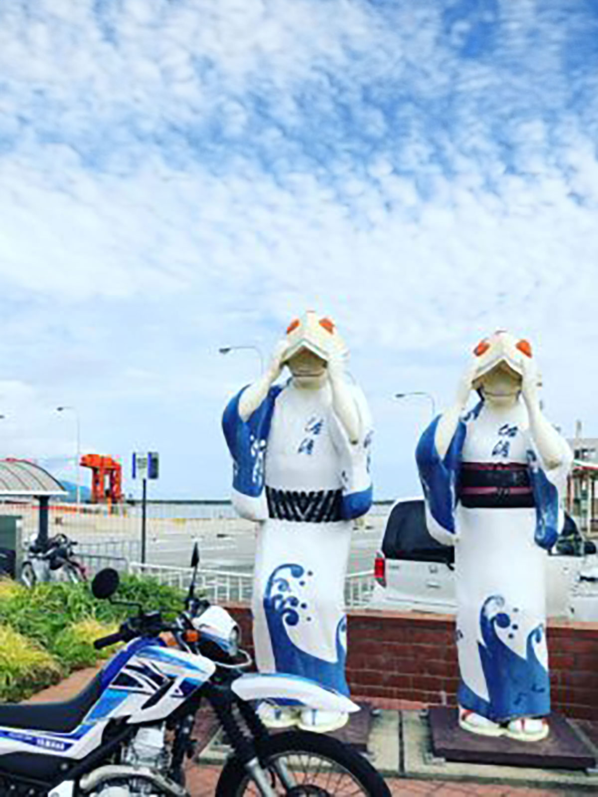 佐渡おけさの像や鬼太鼓(おんでこ)の像など、佐渡の芸能にまつわるものがチラホラ。いずれにしても離島とはいえ古くから人々の暮らしがこの地にあるということを示すもの。リスペクトしつつバイクをフェリー乗り場車両待機所へ入れ、シータウン商店街へ。