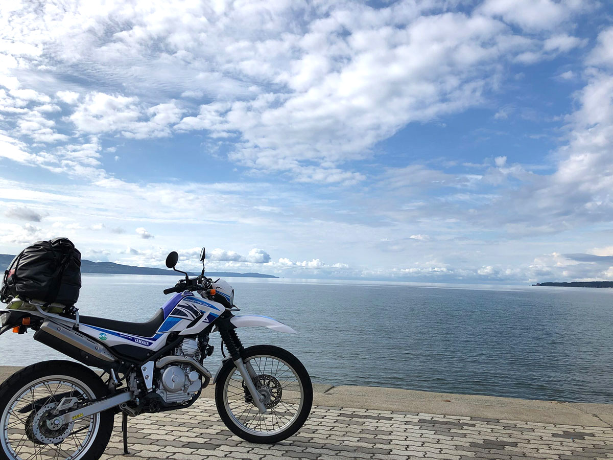 いつものように防水仕様のRR5612 AQADRYカーゴにすべての荷物をパッキング、スマートなバイクへの積載を完了し、入崎キャンプ場を出たのは7時をちょっと回ったころ。
