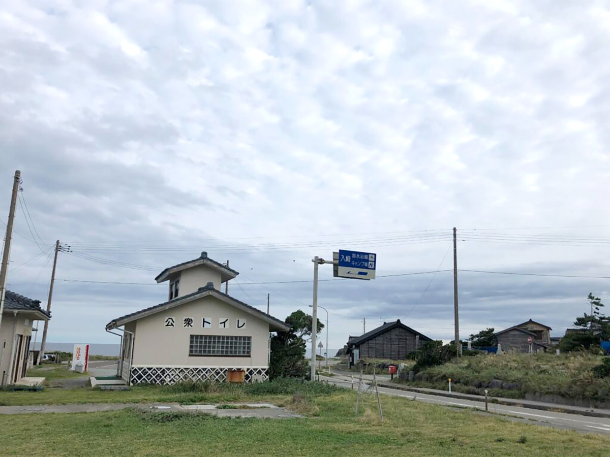 ここ入崎キャンプ場は佐渡一周線こと県道45号沿いにあり、24時間照明のある綺麗な屋根付きの水洗公衆トイレがあります。