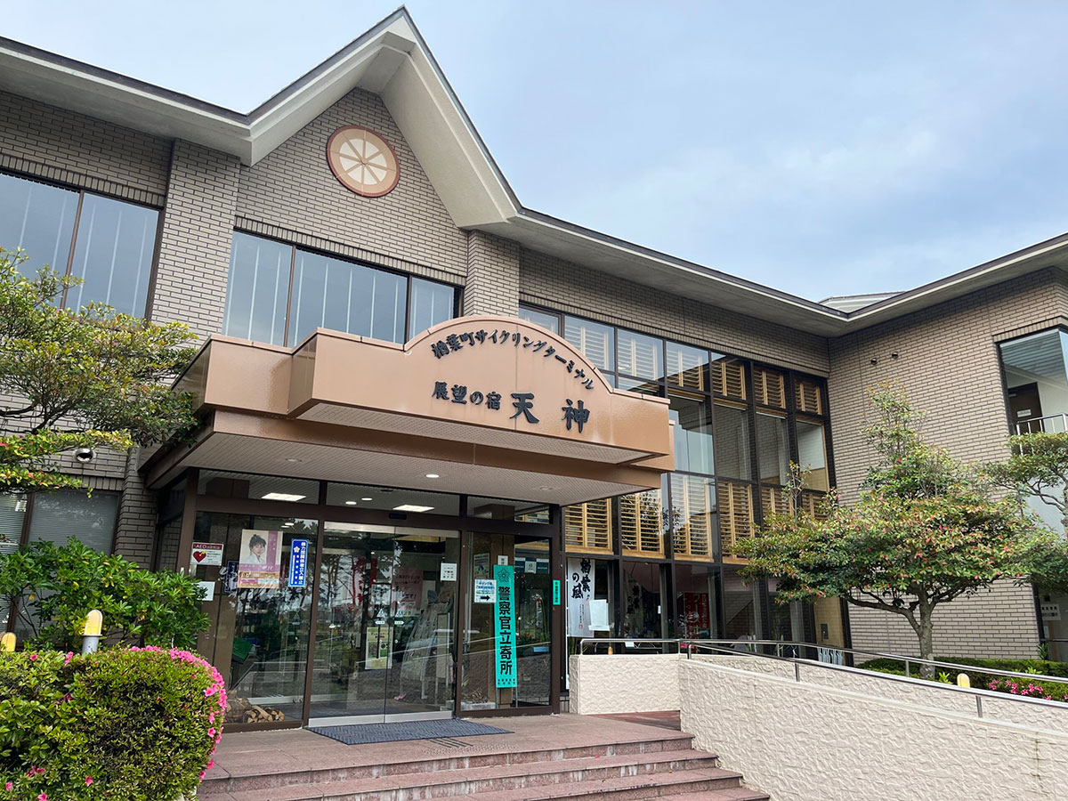 出発地の天神岬スポーツ公園はテントサイトもあり、前日キャンプも検討したのですが翌朝の撤収作業を考えると今夜の宿は併設されている 展望の宿 天神 さんに素泊まりで決定!