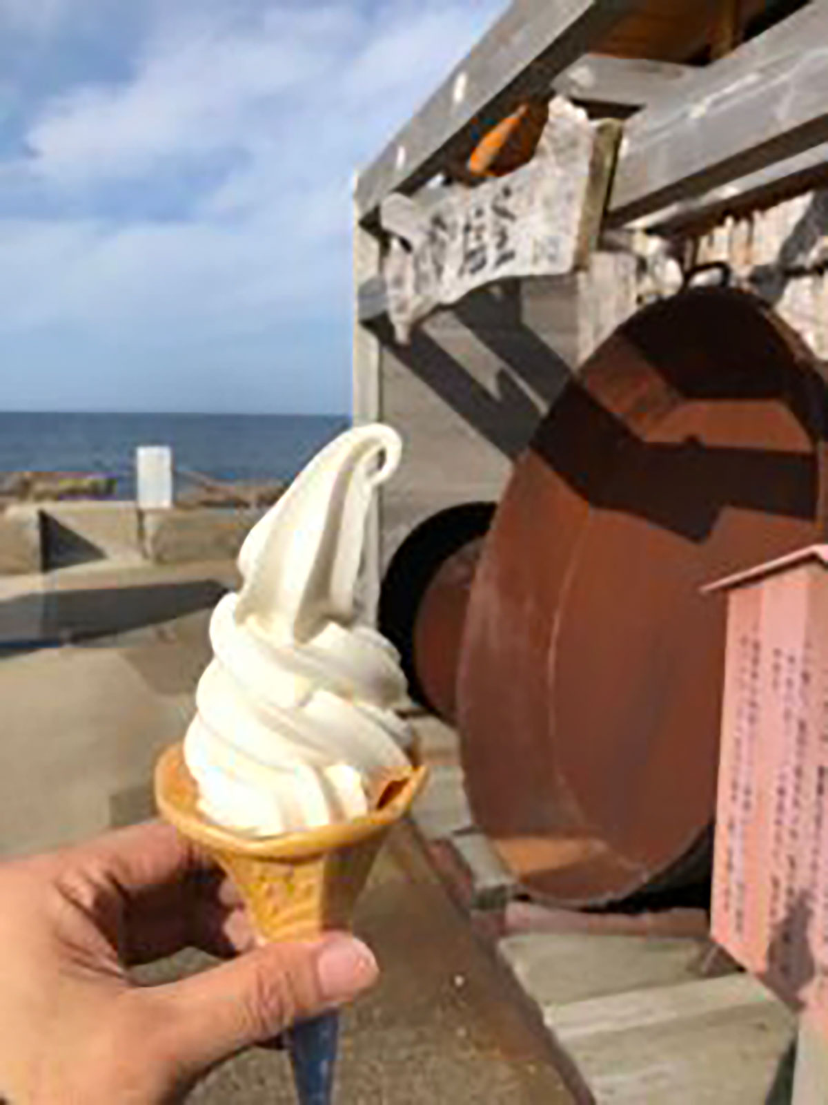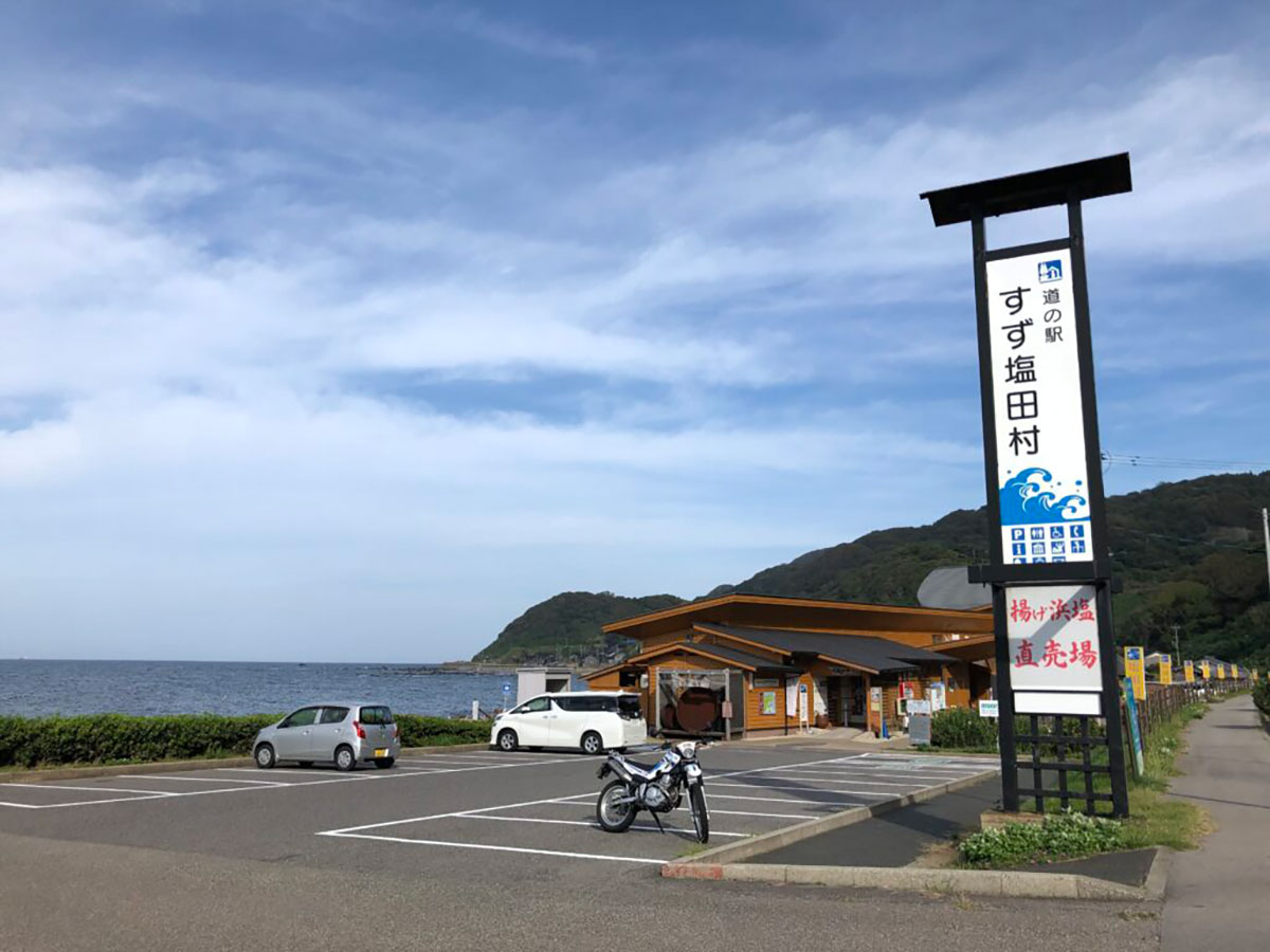 日もだいぶ傾き始め、ちょっと焦りながら今度は日本海側の道の駅をめぐります。道の駅すず塩田村では名物塩ソフトを。