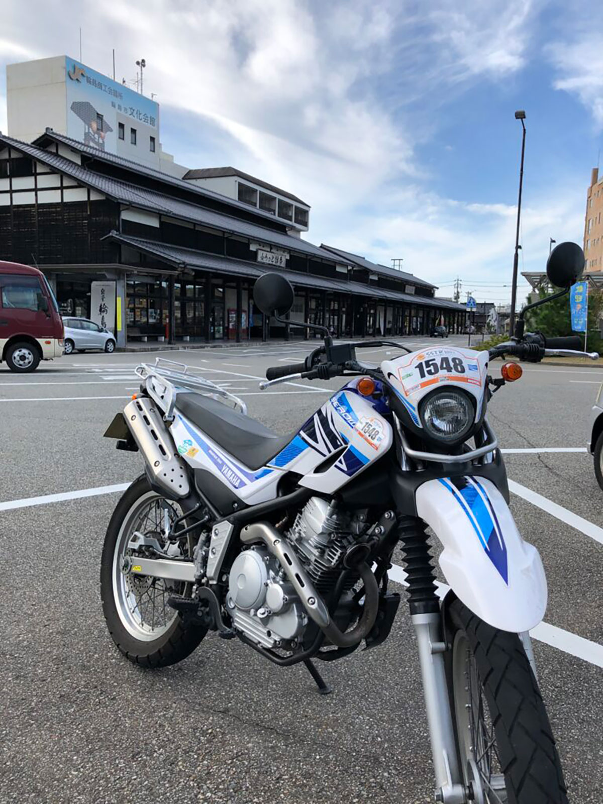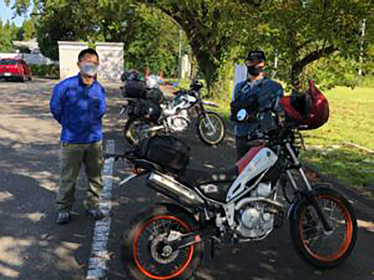 まず向かったのは道の駅のとじま。ここではトリッカーのSSTR参加ライダーと、荷物満載でキャンプツー途中のセローライダーに会いました。