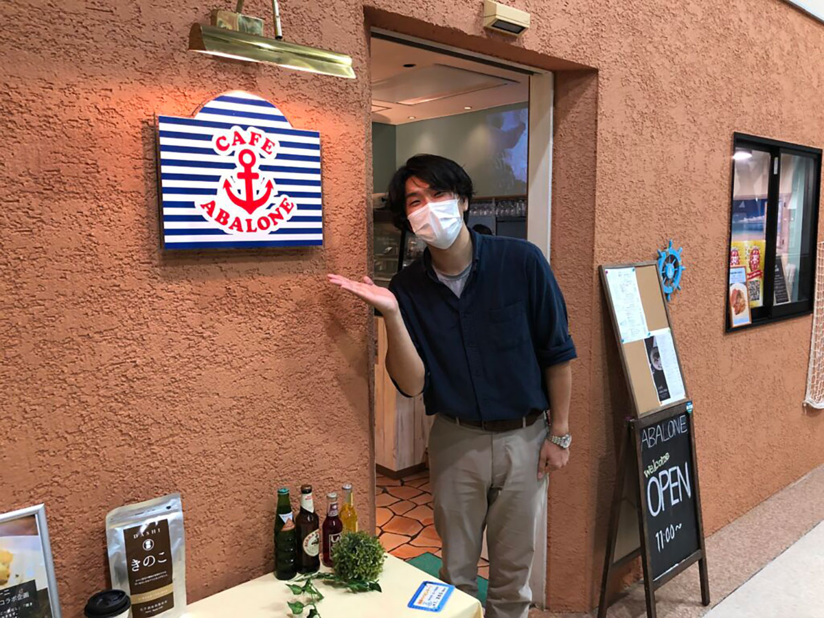 お土産街食祭市場の二階にあるカフェABALONEへ。