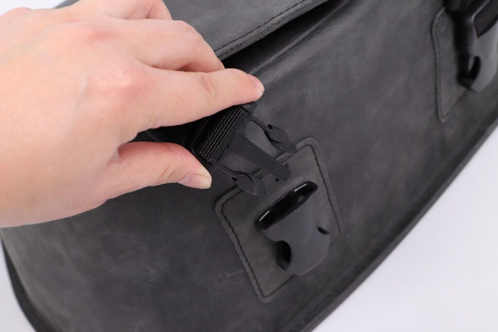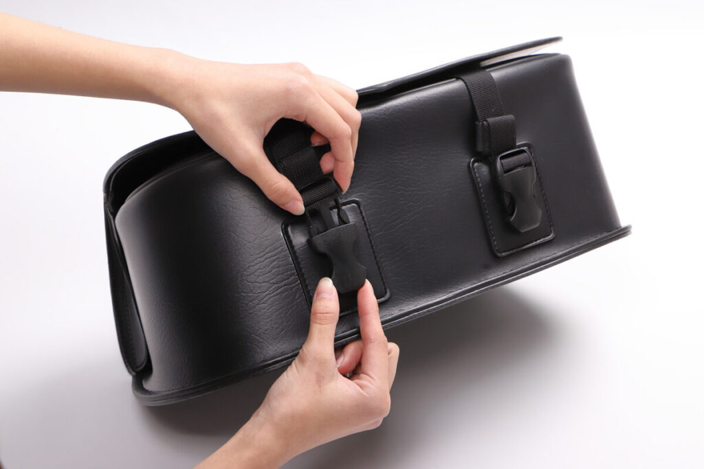 本革で2色と、シンセティックレザーのモデルが発売予定。お好みに合わせてお選びいただけます。バッグ本体の他に、バッグ側、車体側のそれぞれのステーとレインカバーが付属。買ってすぐに取り付けることができます。