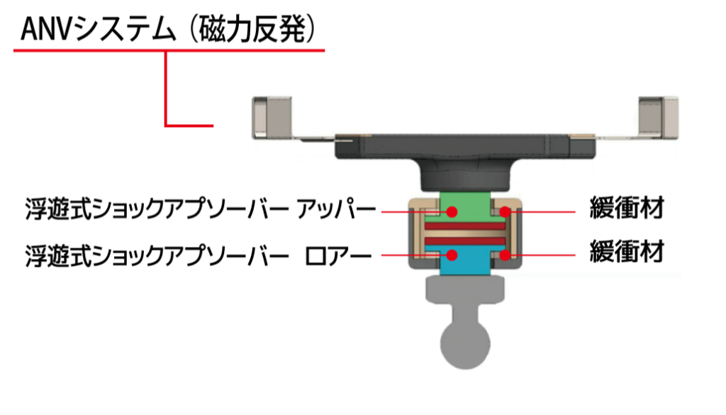 従来のANVシステムの磁力反発にシリコンダンパーを緩衝材として4ヶ所追加しました。