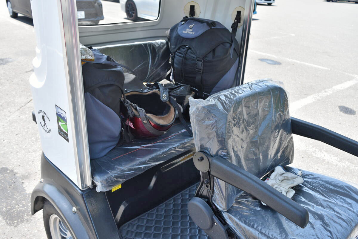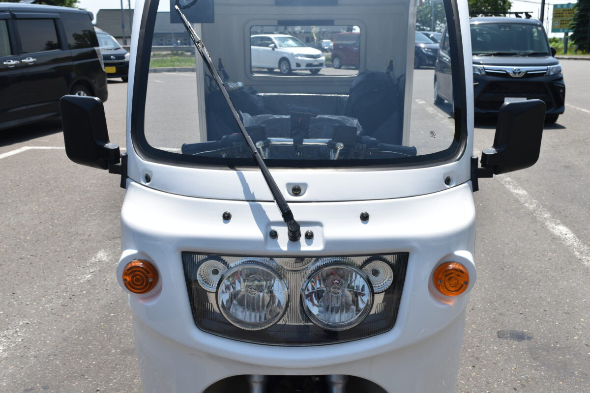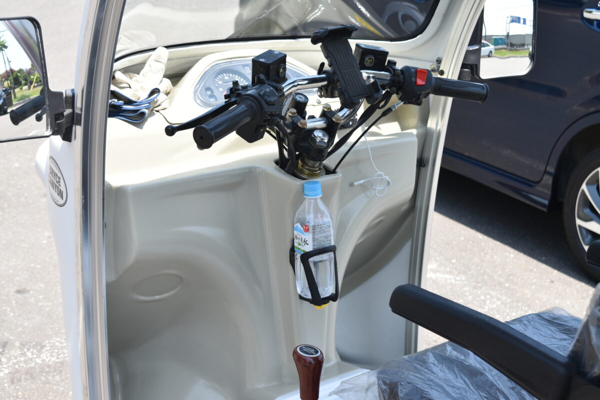 見た目はホンダ・ジャイロの大型版という感じ。フロントウィンドウにはワイパーが設置され、頼もしく感じます。 ハンドルは発売当時のダイハツ・ミゼットのようにバイクそのもの。中央に配置されたシンプルなメーター類もそれっぽく、ライダーのバイクマインドをそそります。